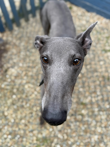 Beryl is very people-motivated and thrives on human attention and affection, building deep bonds with those around her. Her sweet, social and affectionate personality makes her a dream companion, and her little spark of greyhound sass just adds to her charm.