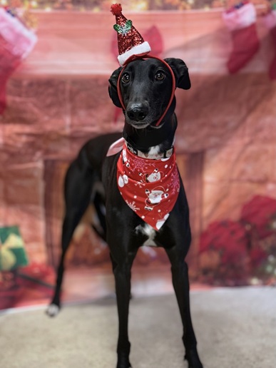 Once she feels comfortable, Mariah is a wonderfully social girl who enjoys the company of both humans and her fellow greyhounds. She has shared her kennel with a couple of lovely boys during her time with us and has gotten along beautifully with them. Other hounds really help her confidence rise, like the perfect harmony she needs to feel safe.