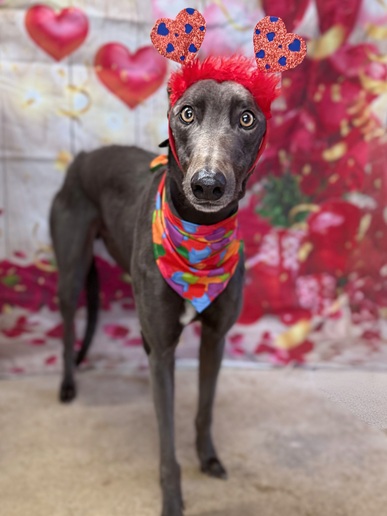 He is every bit the classic loving male greyhound, soppy, soft-hearted, and just a tiny bit ditzy at times in the most endearing way. His fun-loving side is perfectly balanced with his easy-going ways.