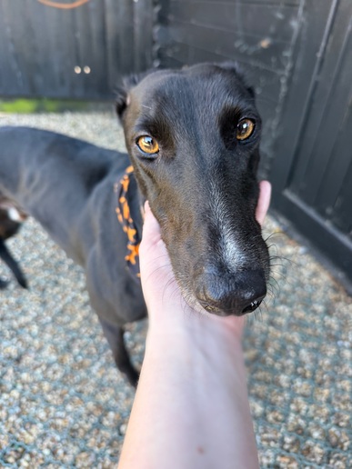 Whether he’s got a hound by his side or a whole kennel to himself, he’s content, calm, and easy-going. He’d happily share his forever home with a friendly, calm female greyhound who’s looking for a kind-hearted companion.