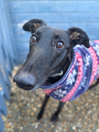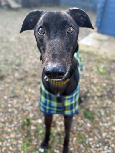 Although Twinkle is gentle and chilled, she has that wonderful greyhound goofiness that sparkles through when she feels happy and safe. She loves her zoomies, has a playful streak, and is not afraid to show a little sass when the moment feels right.